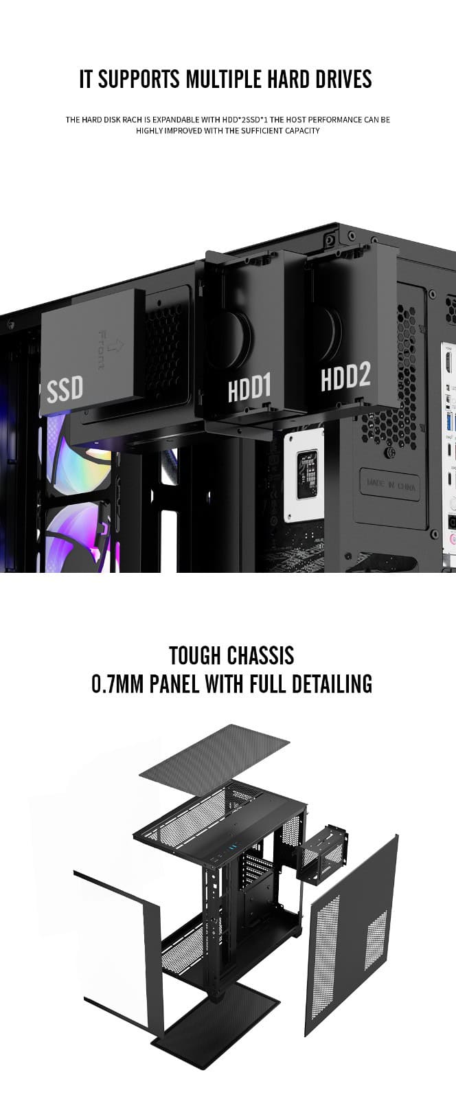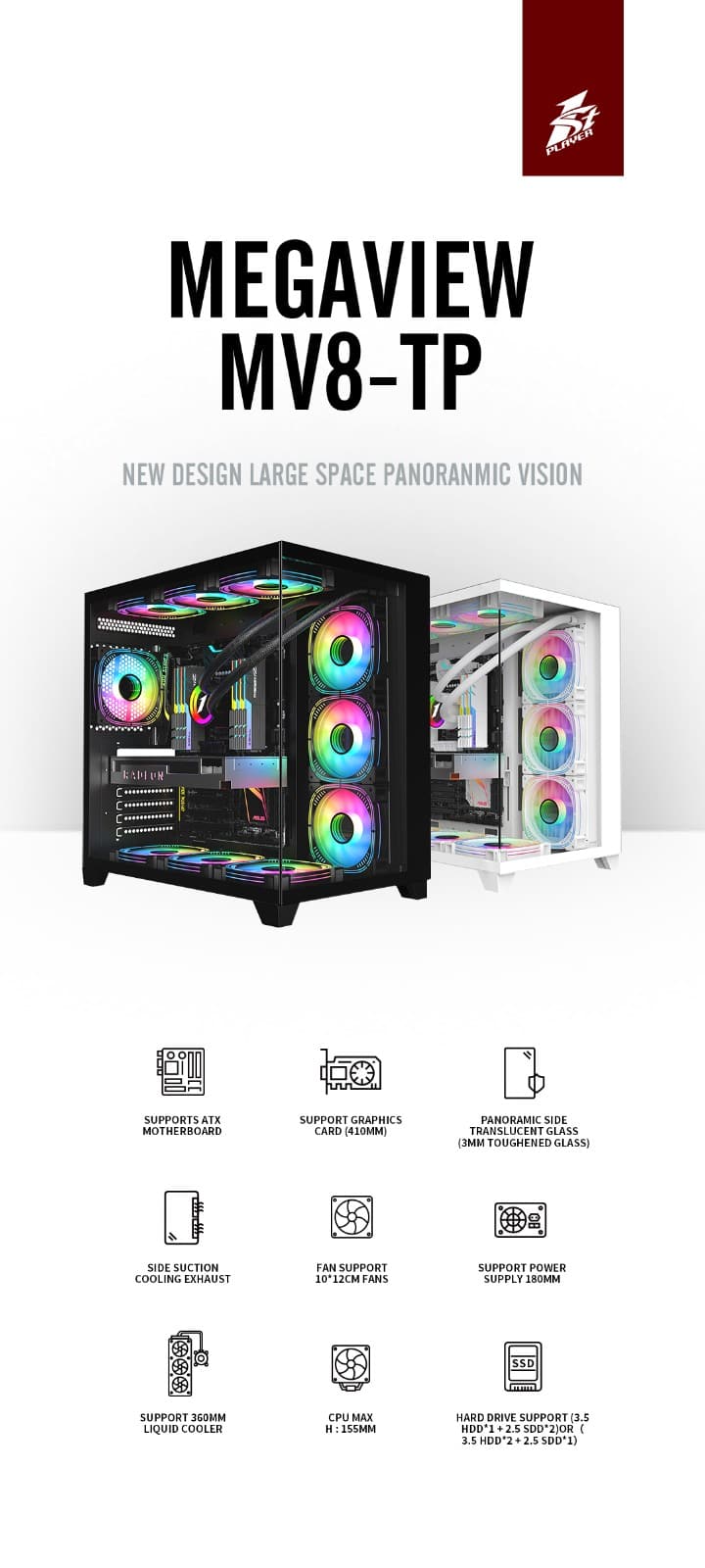 Front / Left Panel: Tempered glass