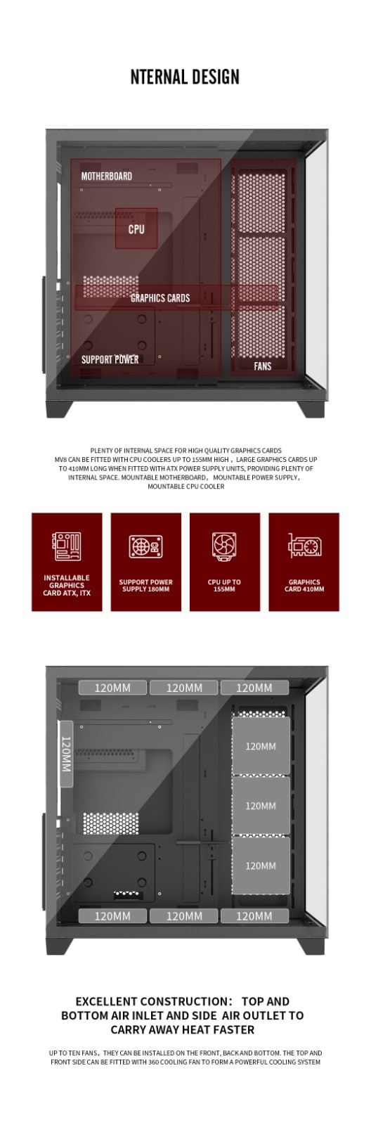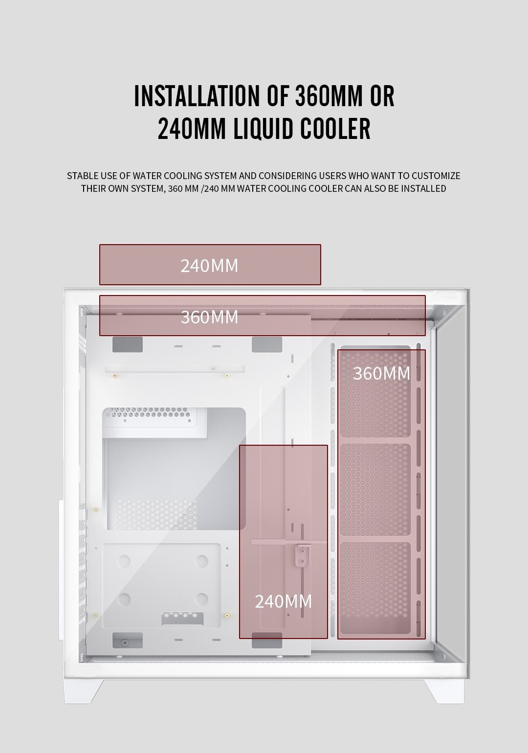 Support 360 mm liquid cooling at the top and front